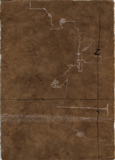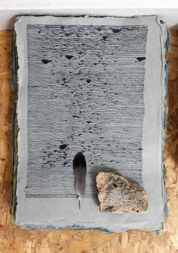 Tusche auf handgerissenem Pflanzenpapier. 10 aus x. je ca 38 x 27 cm