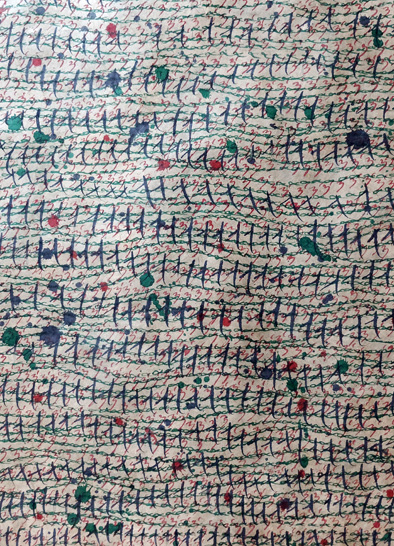 Bleistift und Tusche auf Leinwand. 64 x 43 cm