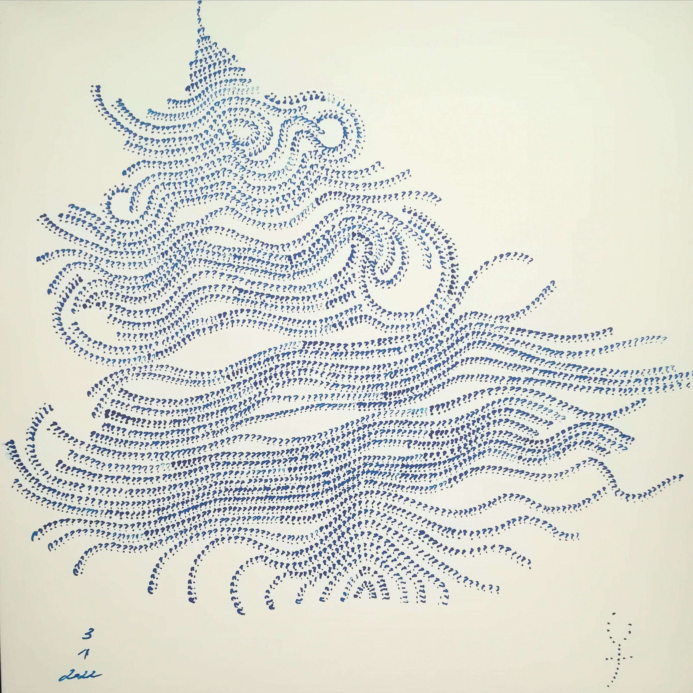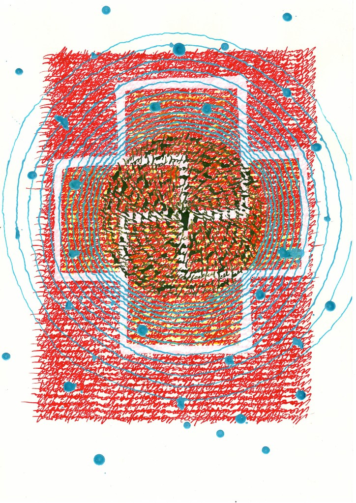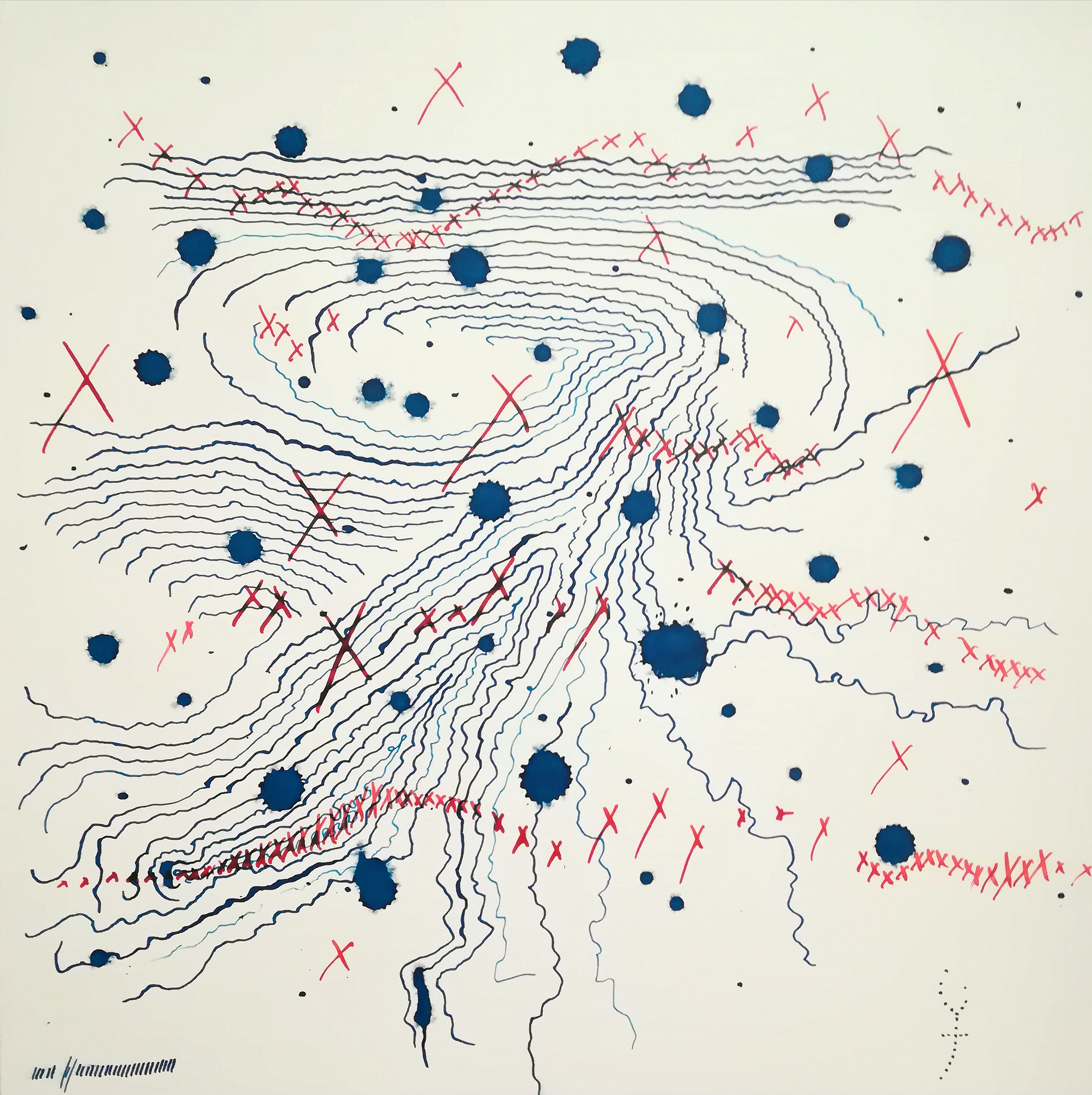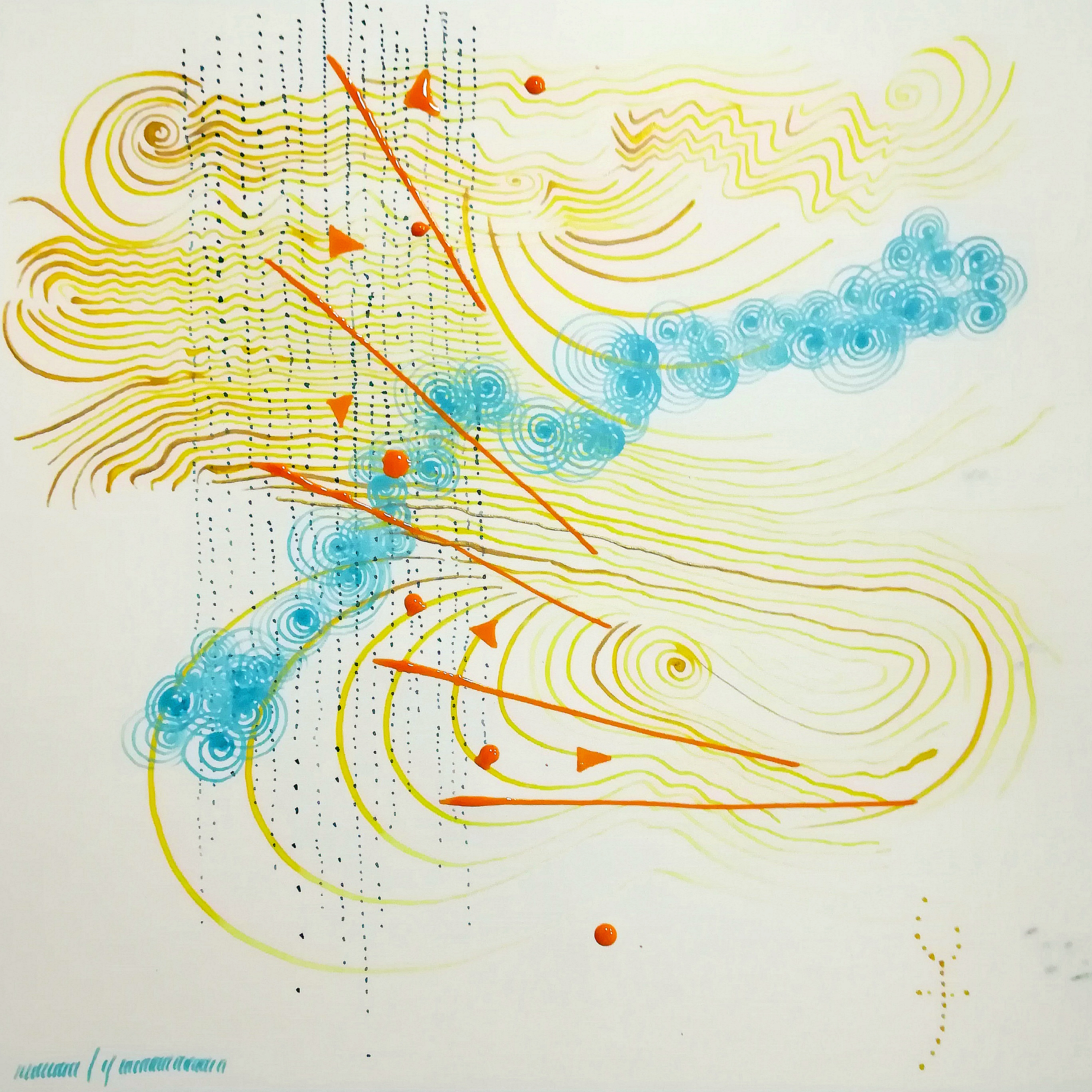 Tusche und Tinte auf Papier. 25 x 25 cm