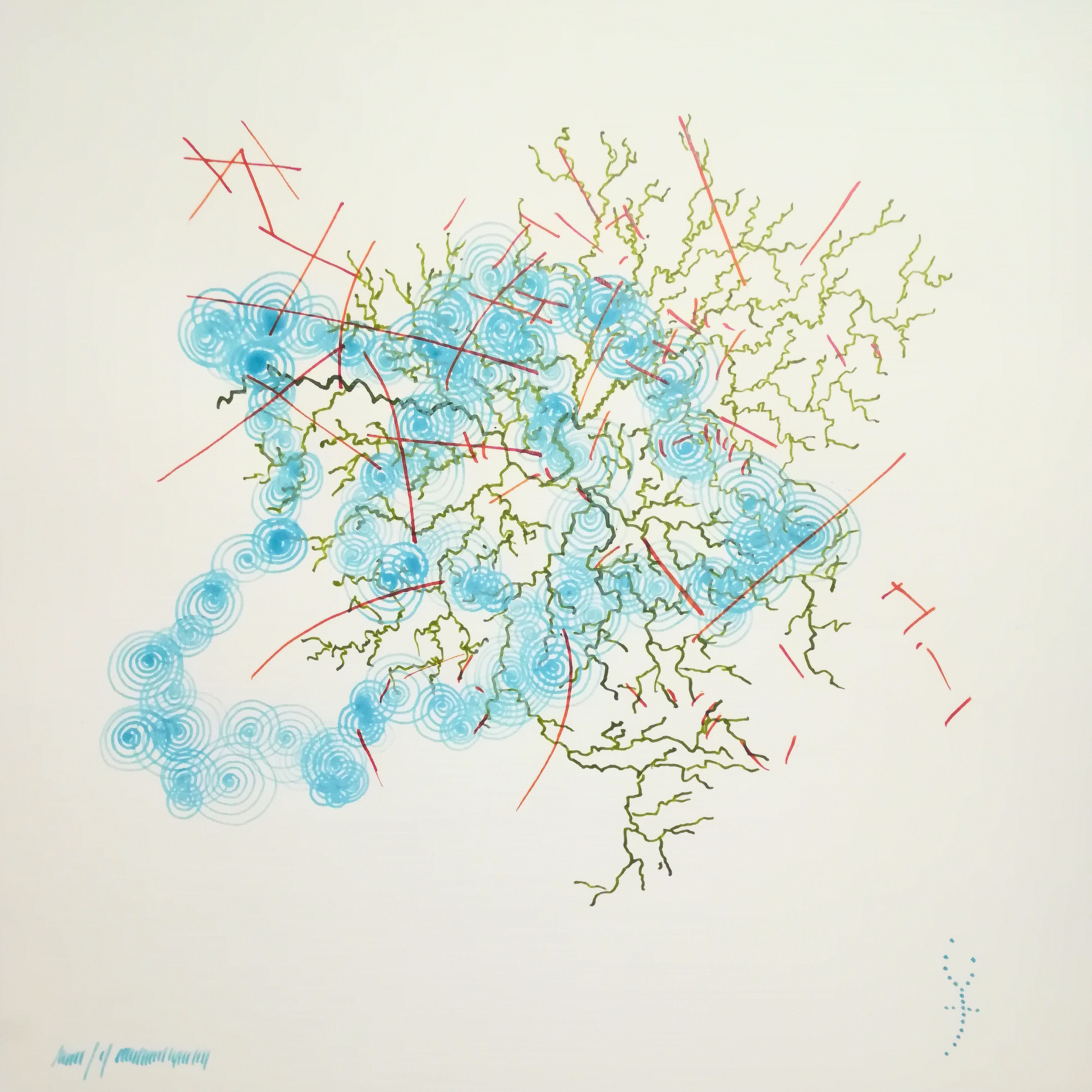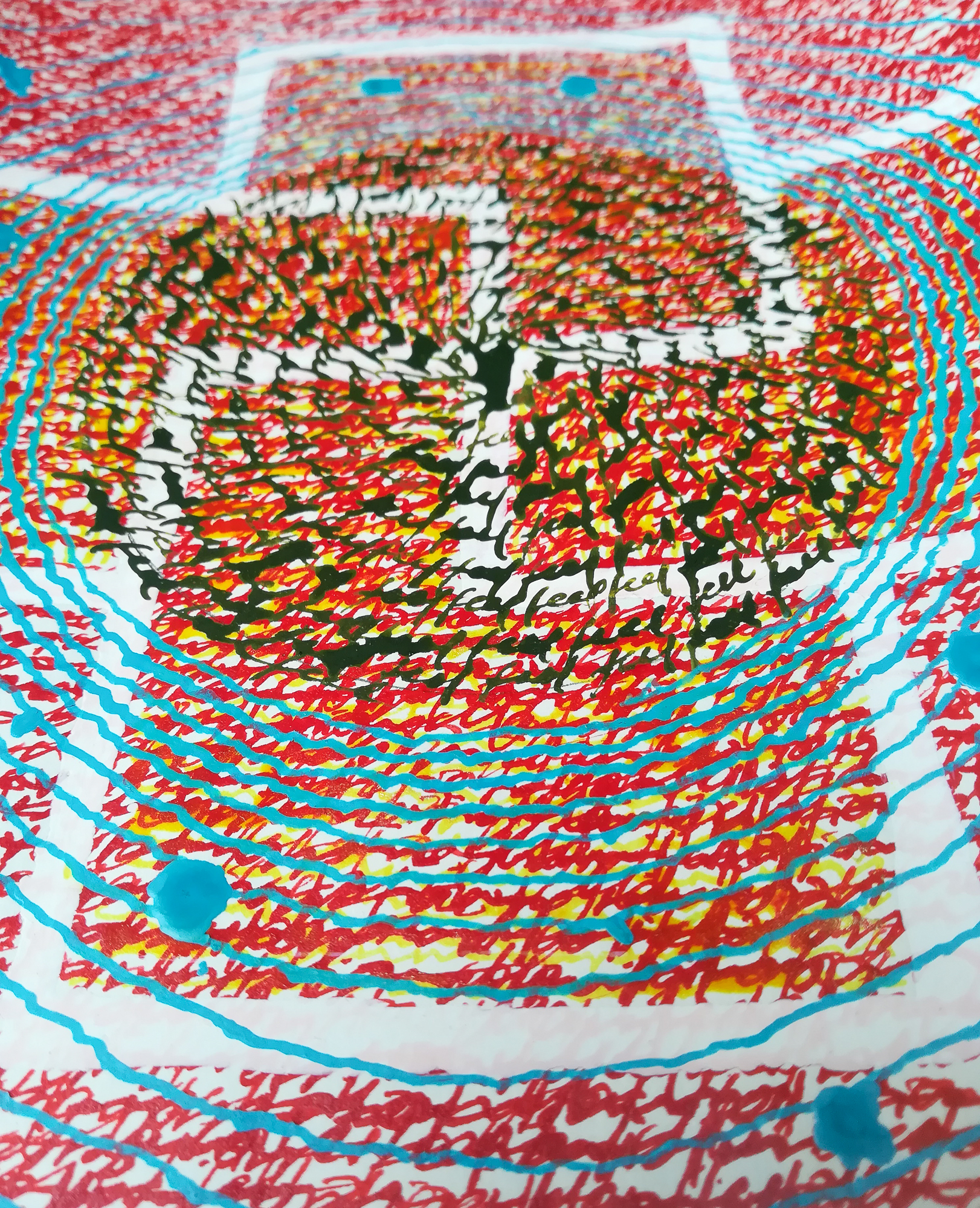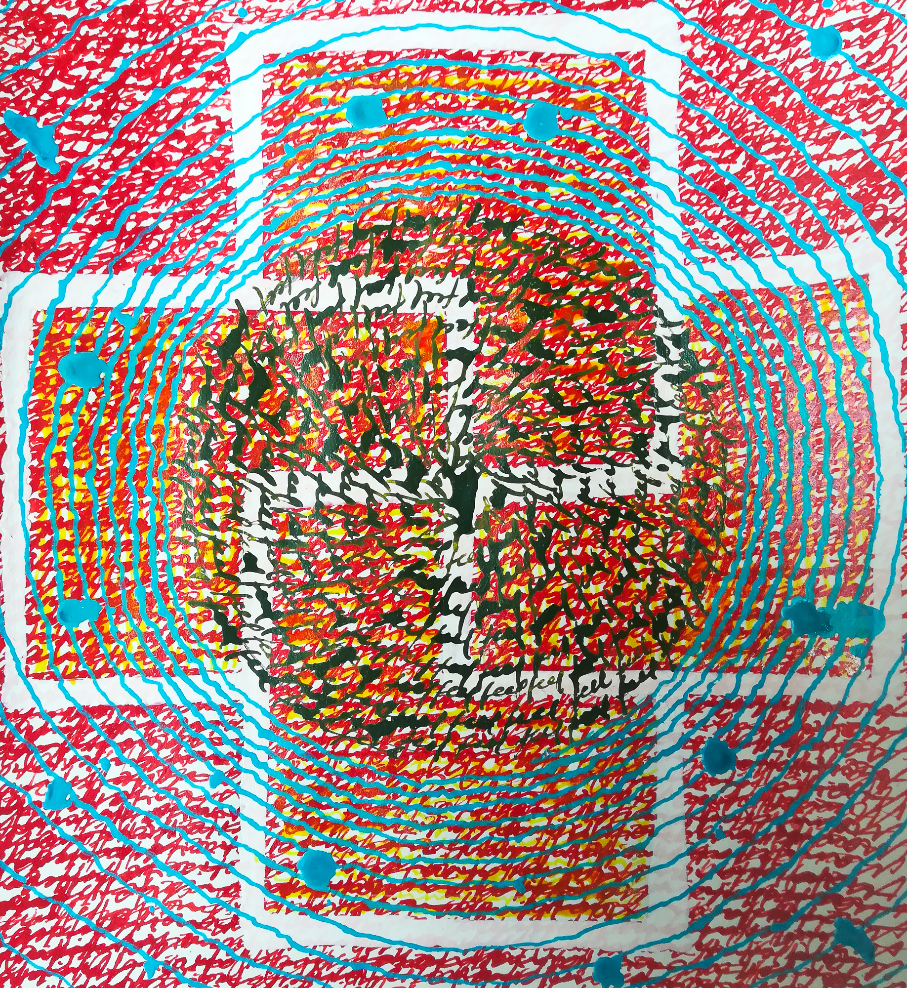 Tusche und Tinte auf Papier. 25 x 25 cm