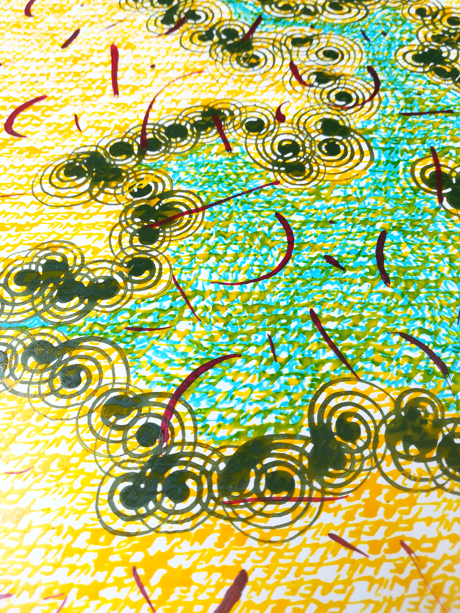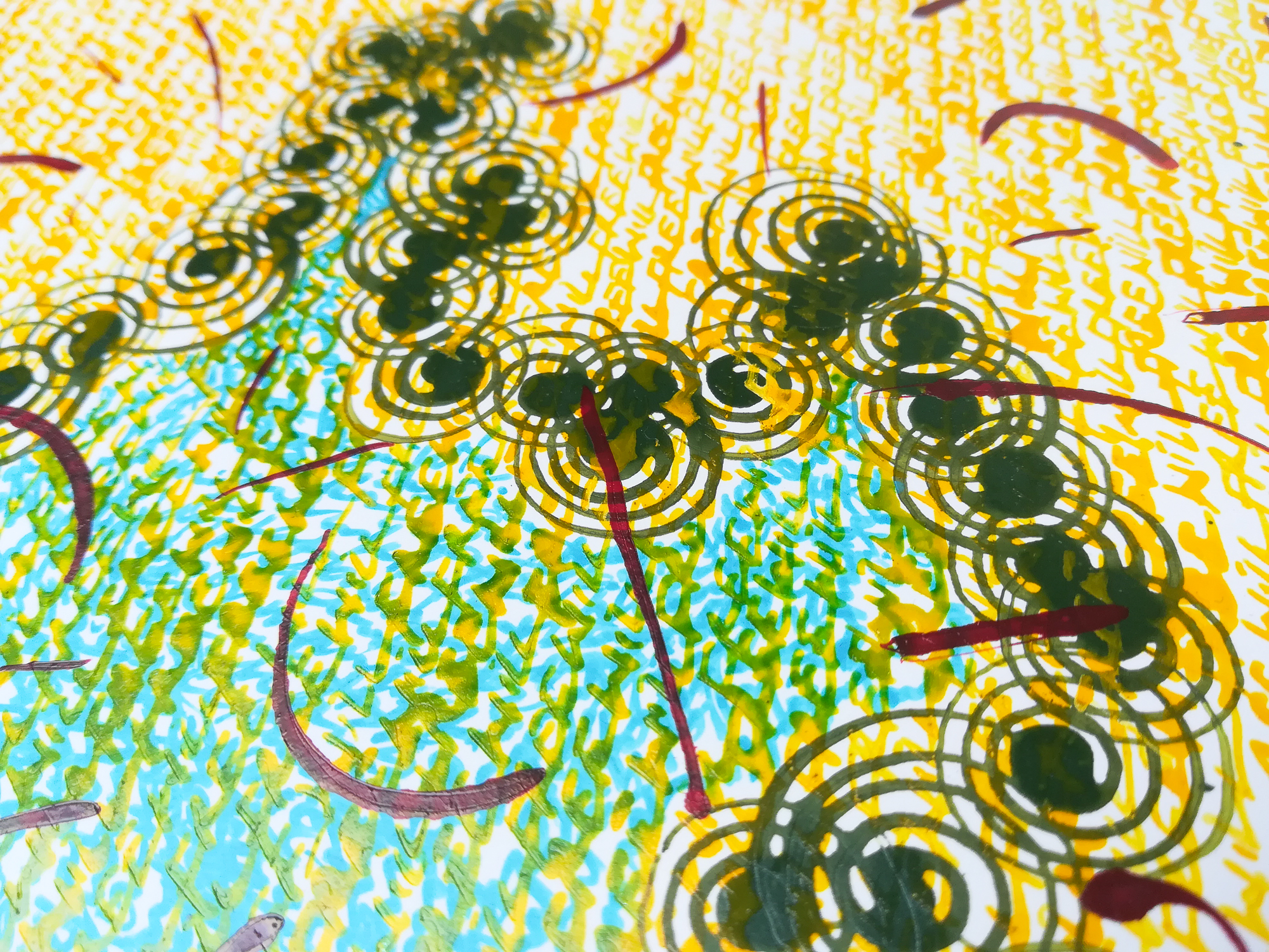 Rollerpen auf Papier. 9 aus x. 29,7 x 21 cm