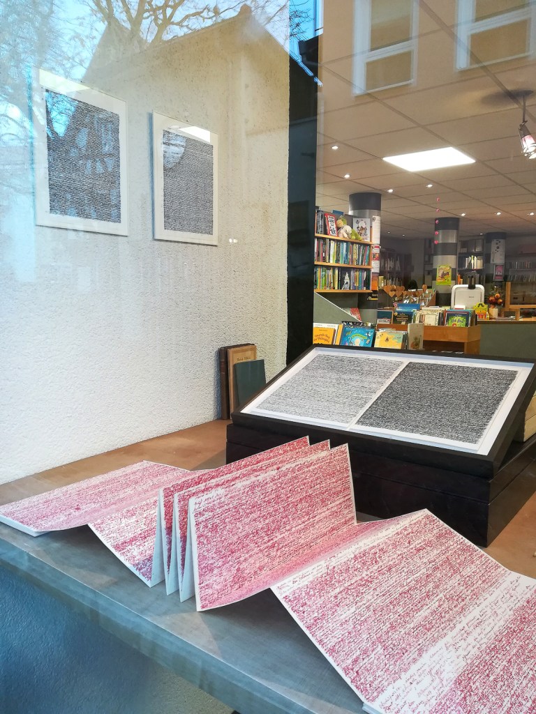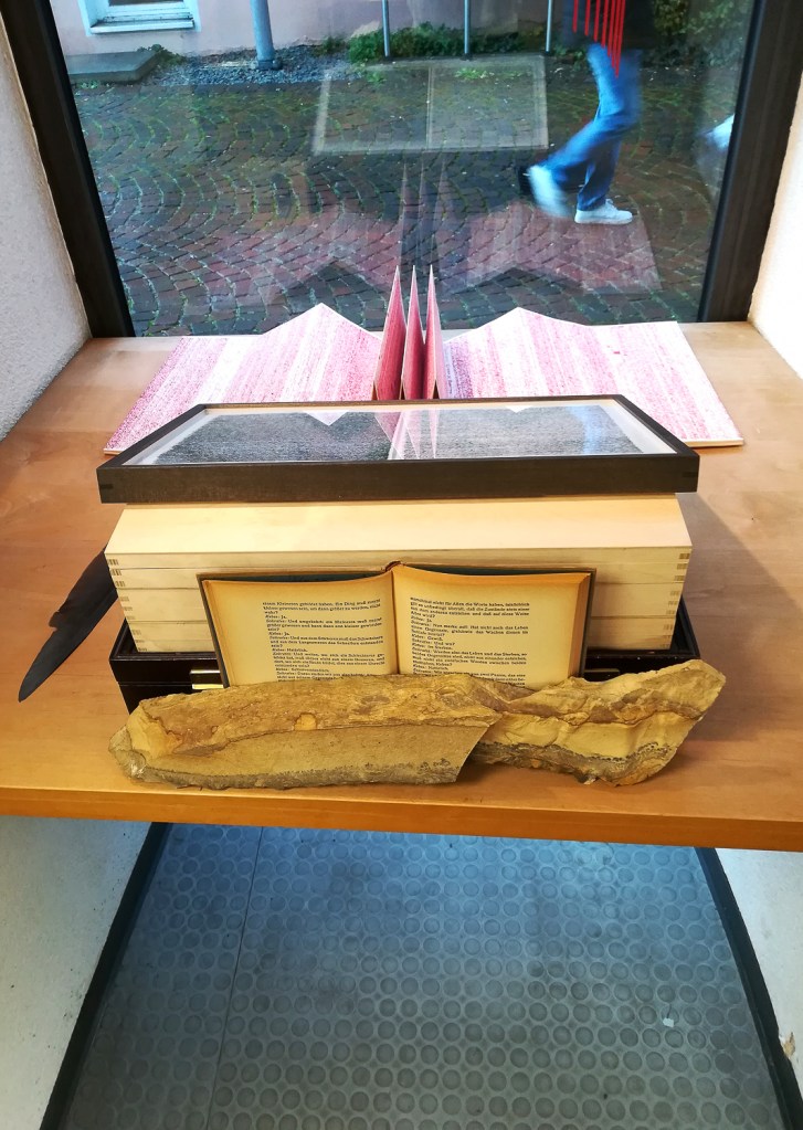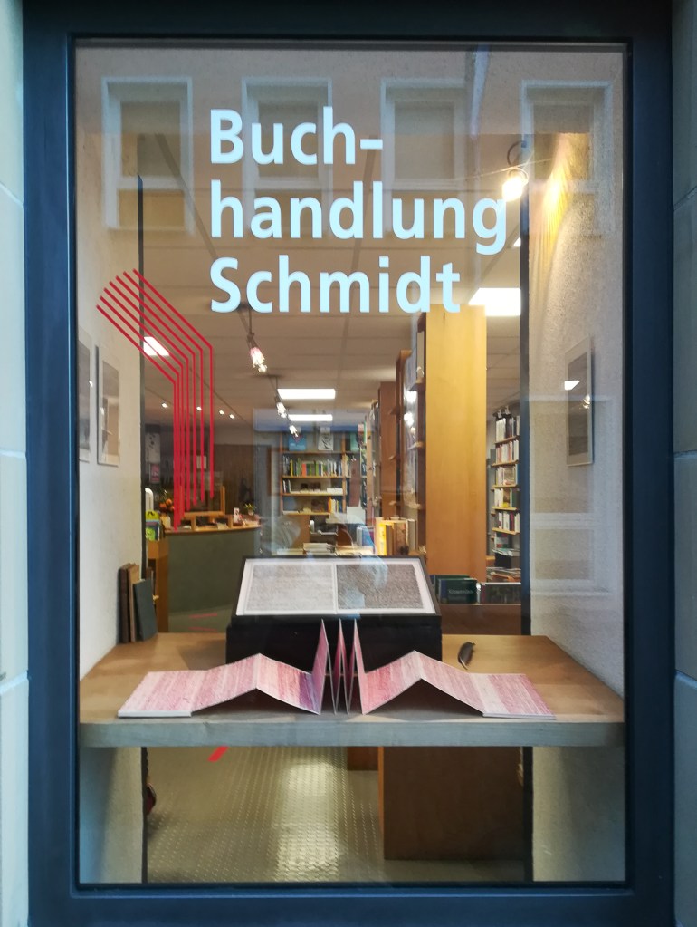 Ausstellungsansichten des Schaufensters der Buchhandlung Schmidt in Schwäbisch Gmünd
