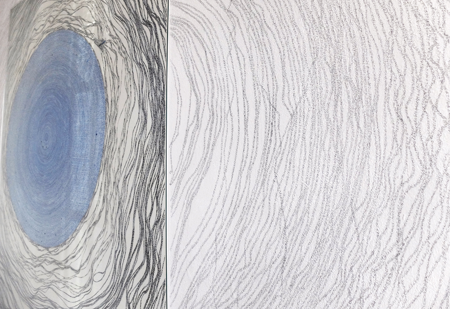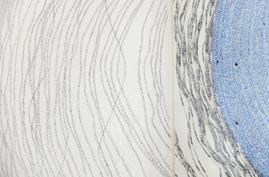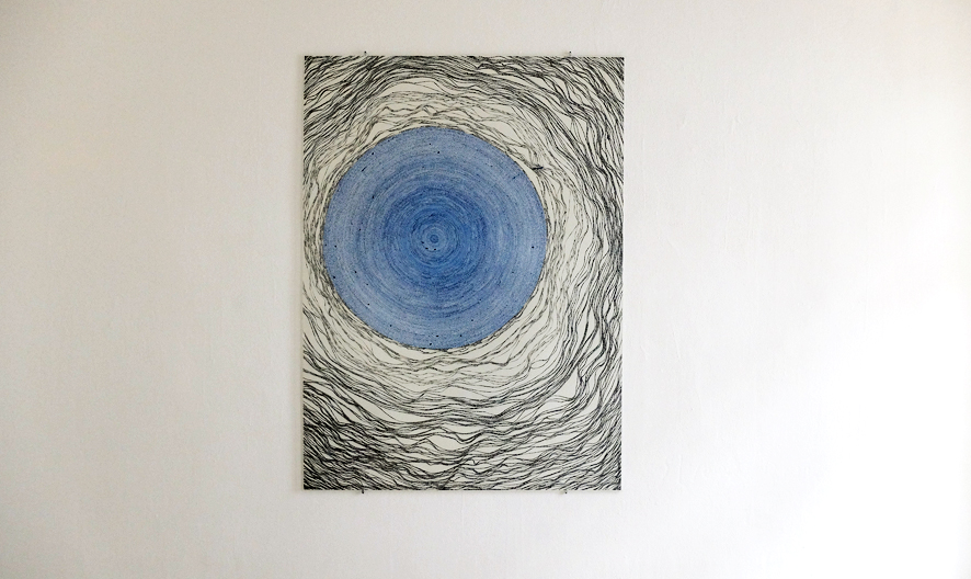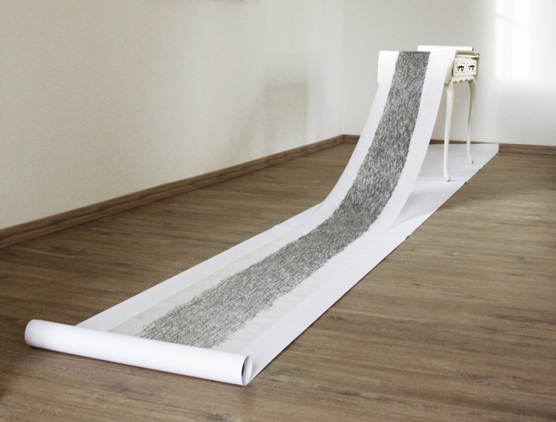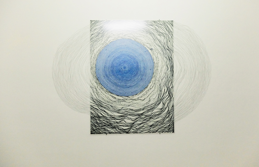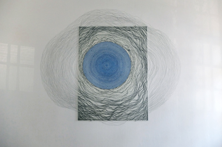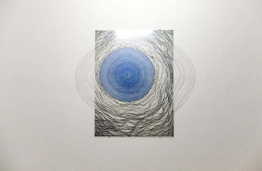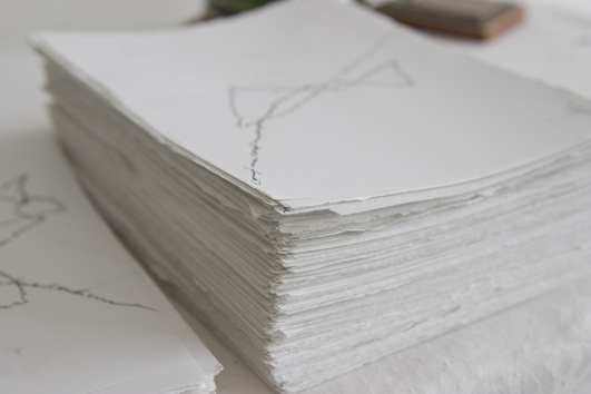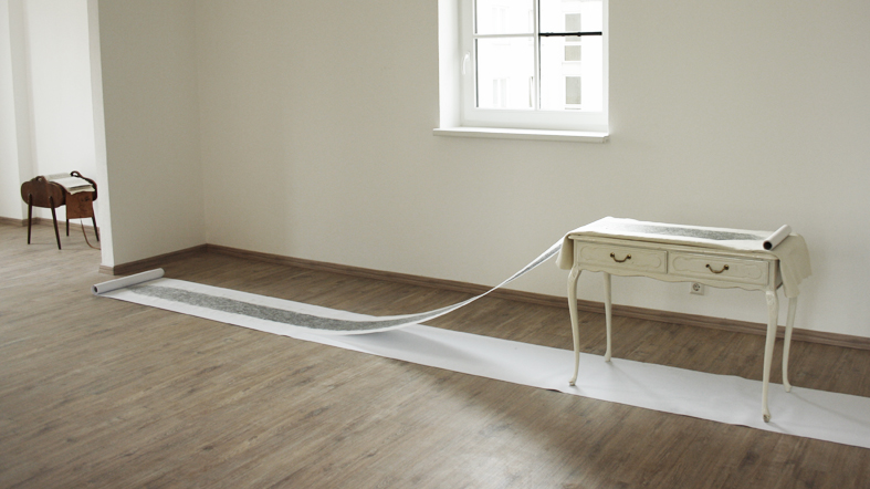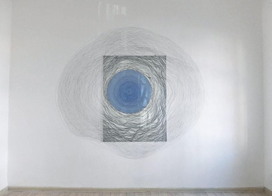 Papier. Tusche. Antireflexglas. Graphit auf Wand.