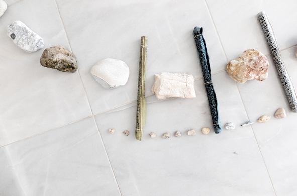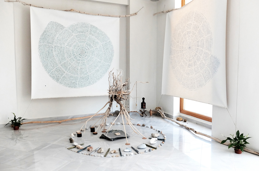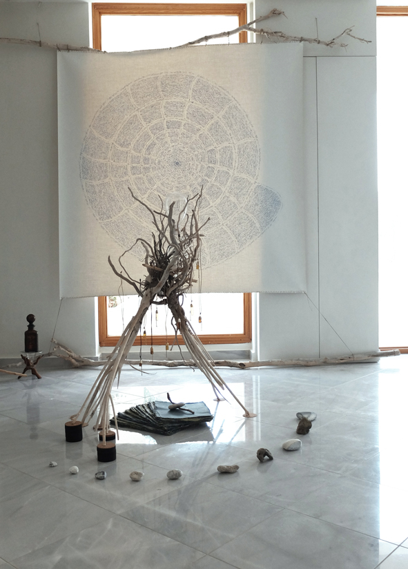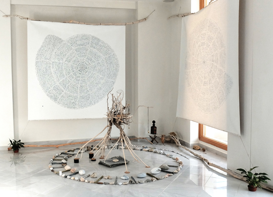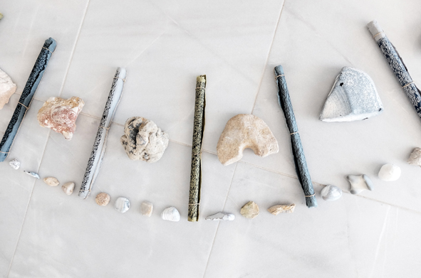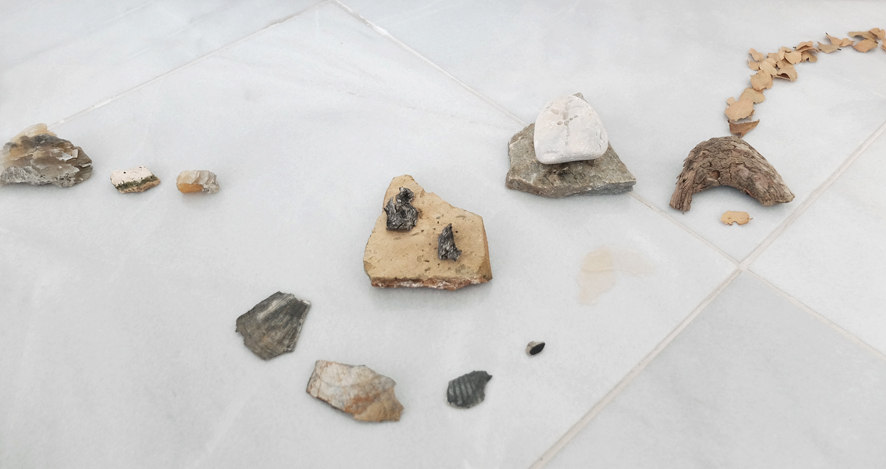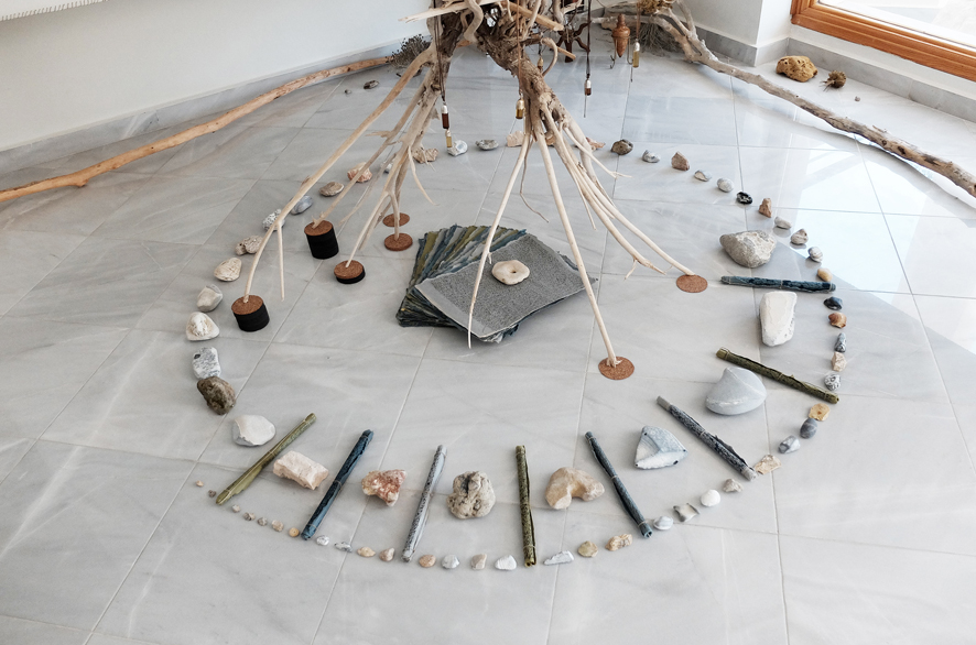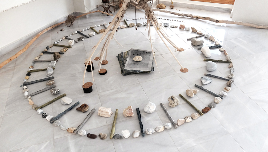 Abschlussinstallation mit versammelten Geschenken eines Sommers auf der Insel Kefalonia für das Ionion Center for the Arts and Cultures.
