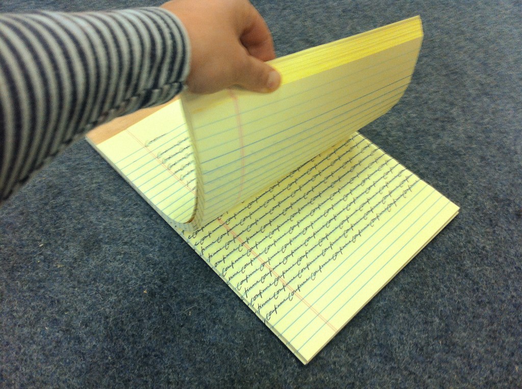 Tinte auf gelbem Gedächtnistrainierpapierblock. Praktizierte Langeweile.