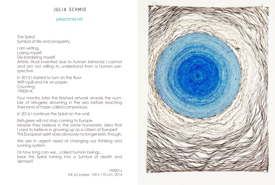 Ausstellungsansicht 2016. 19000 + x + x (Flüchtlinge, die im Meer ertrinken)