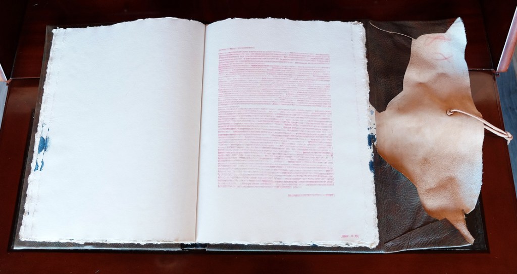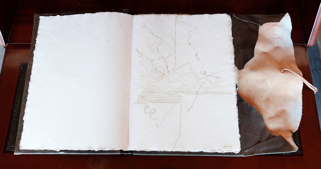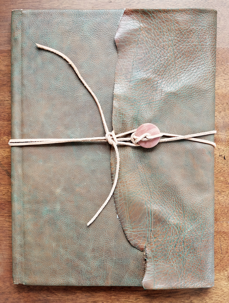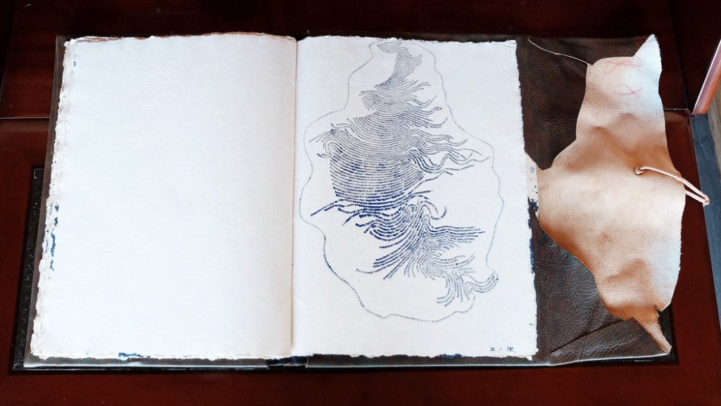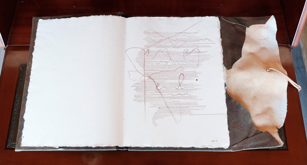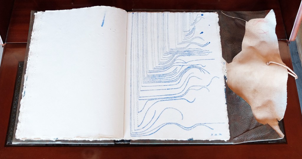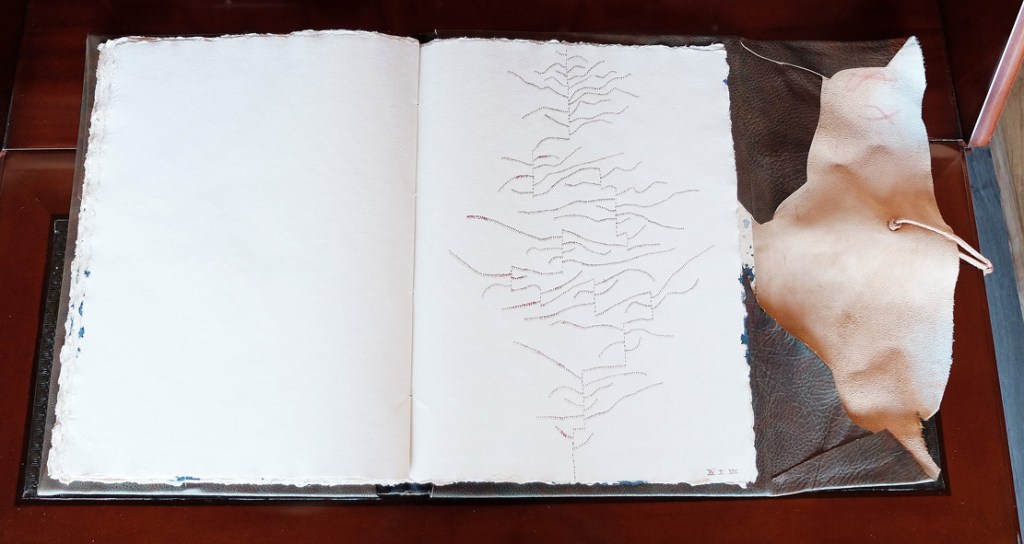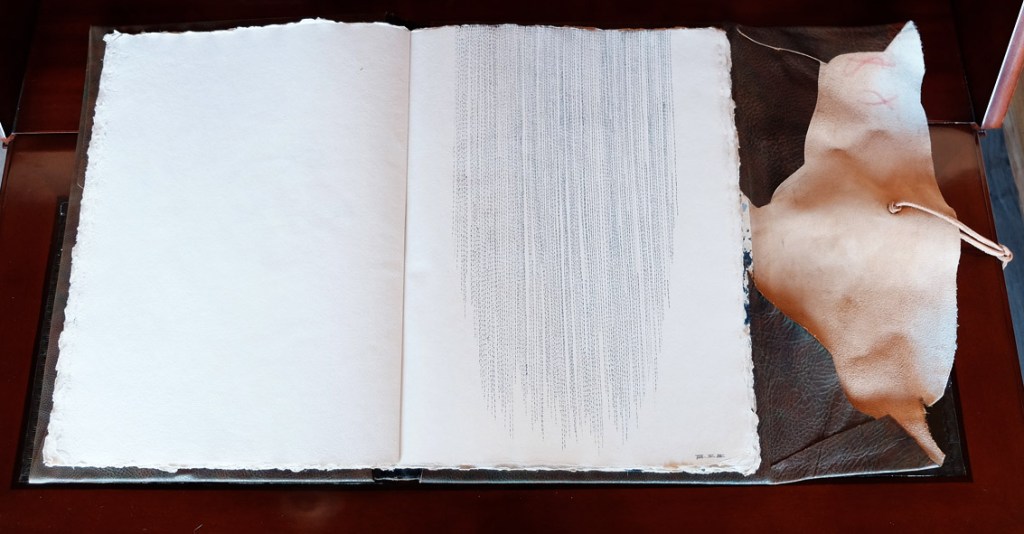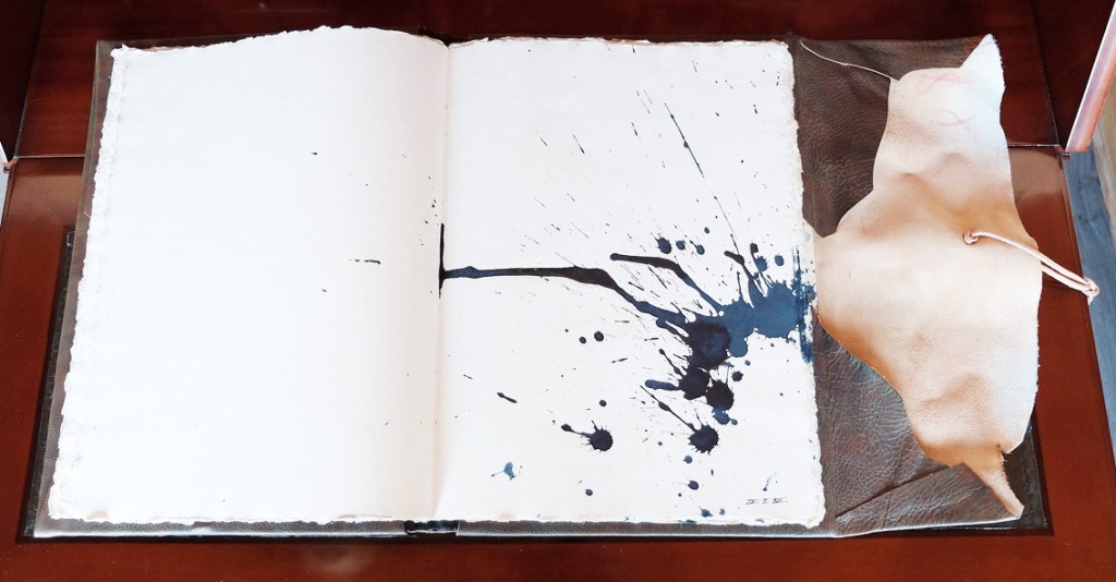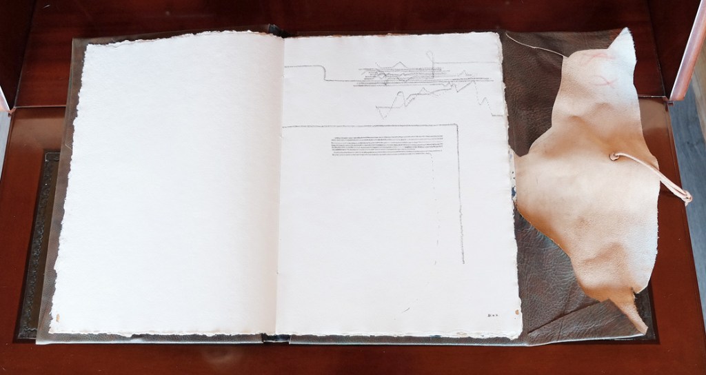 Buch mit Ledereinband. 1 Seite je ca 40 x 30 cm.