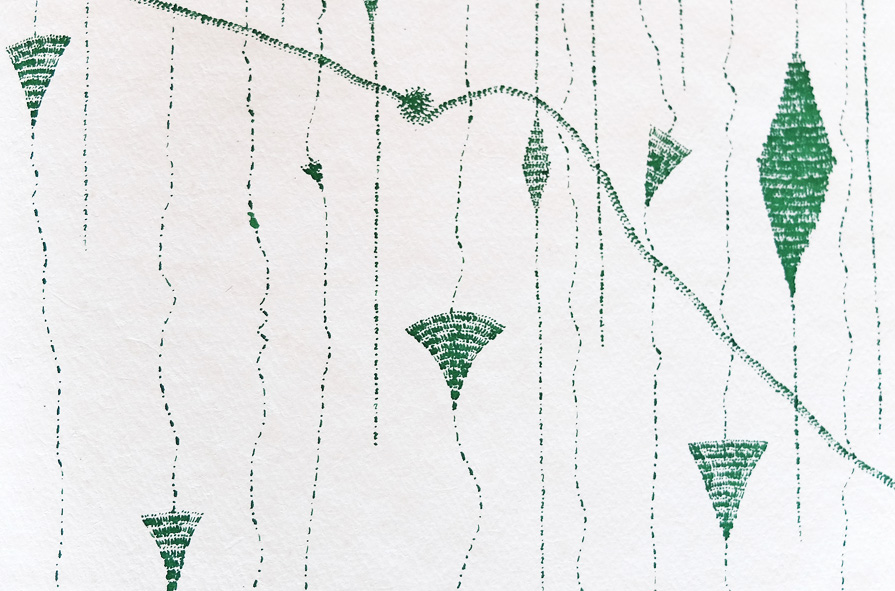Tinte oder Tusche auf handgeschöpftem Büttenpapier.